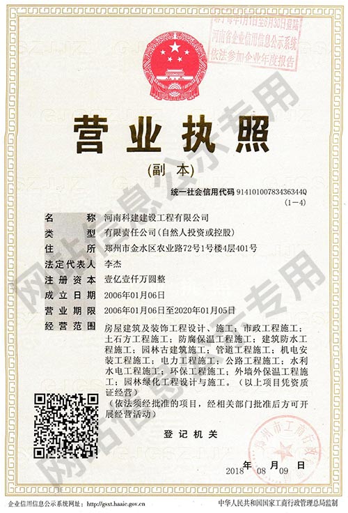 河南科建建設(shè)工程有限公司是一家以房屋建筑、建筑裝飾、建材貿(mào)易及大型建筑機(jī)械設(shè)備租賃為主營業(yè)務(wù)的成長型企業(yè)。擁有建筑工程總承包壹級(jí)資質(zhì),裝飾裝修、防水防腐保溫等專業(yè)承包壹級(jí)資質(zhì),注冊資本1.1億元。